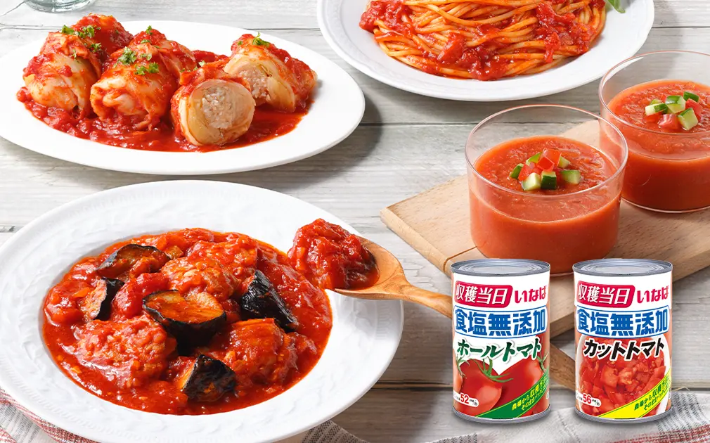 食塩無添加で、トマト本来のおいしさが詰まった一品に仕立てました。 -